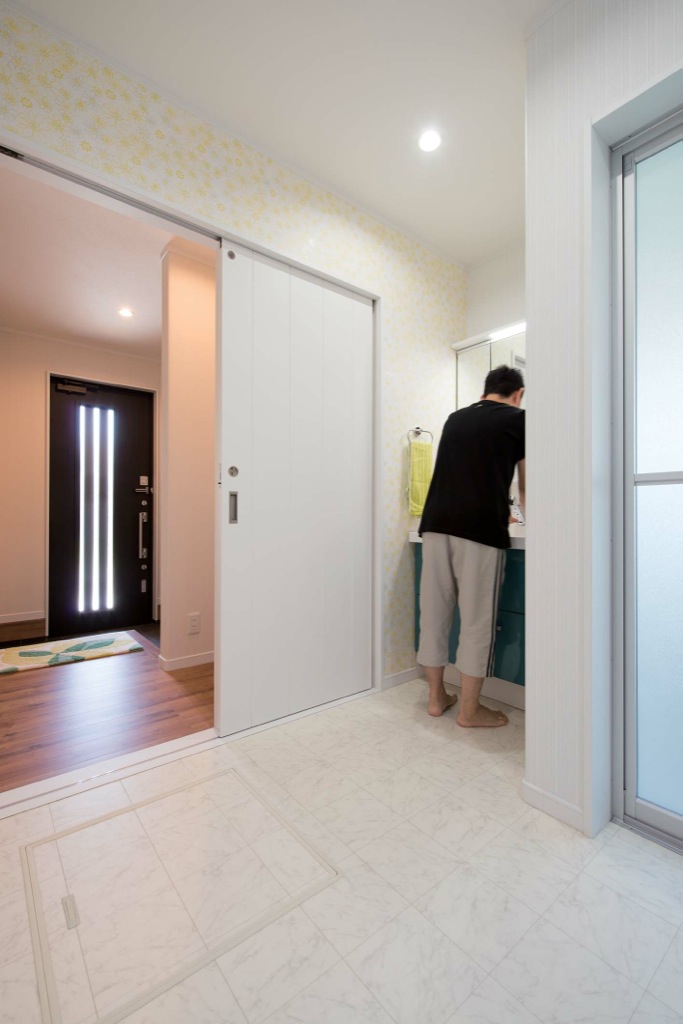 帰宅後すぐに手洗いできる「ただいま手洗い動線」なら、お子様の手洗い習慣づけにも良い効果が。