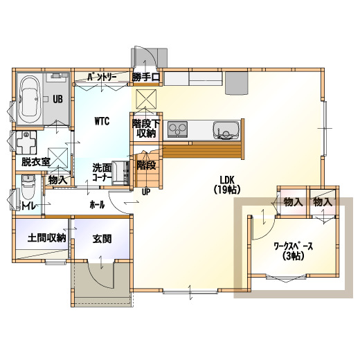 大好きなカフェ空間で料理を楽しみたい。お友だちとの集まりをカフェのような空間で楽しみたい。そんな要望を叶えたプランがこちら。キッチンを囲むカウンターとダイニングテーブルがまるでカフェのよう。ここで食事やお茶をするだけで、まるでカフェに居るかのような気分を楽しむ事が出来ます。大切なカフェの雰囲気を大切にするために収納も充実。生活感や余分な物を広いパントリーへまとめて収納できます。大好きなカフェ空間のある住まい感、いかがですか?