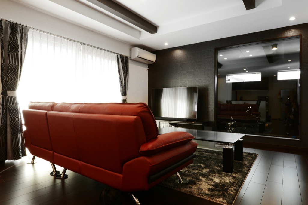 リビングの窓から自慢の愛車を眺めることができます。出勤時は家族からのお見送りが見える窓にもなります。