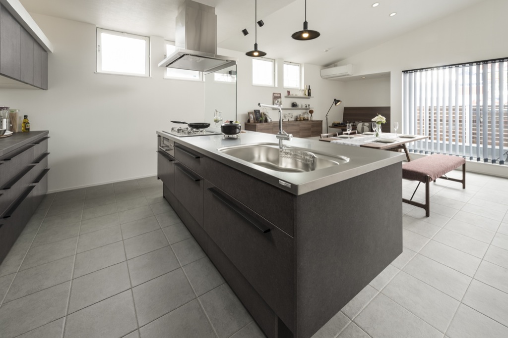 キッチンのまわりをぐるりと周れる「ぐるり動線」。家事の効率もUPし、お子様も料理のお手伝いがしやすいのが特徴です。