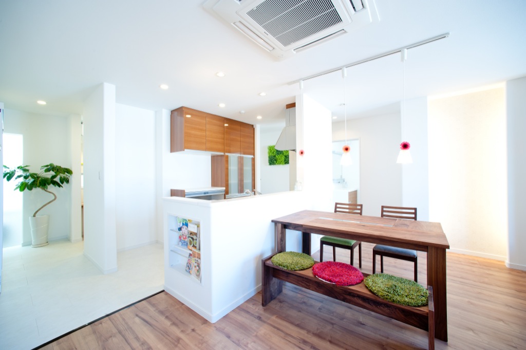 キッチンを中央に配置することで各部屋への移動が最小限になる「ぐるり動線」。キッチンや水まわりの行き来も楽になり、家事の効率がアップします。