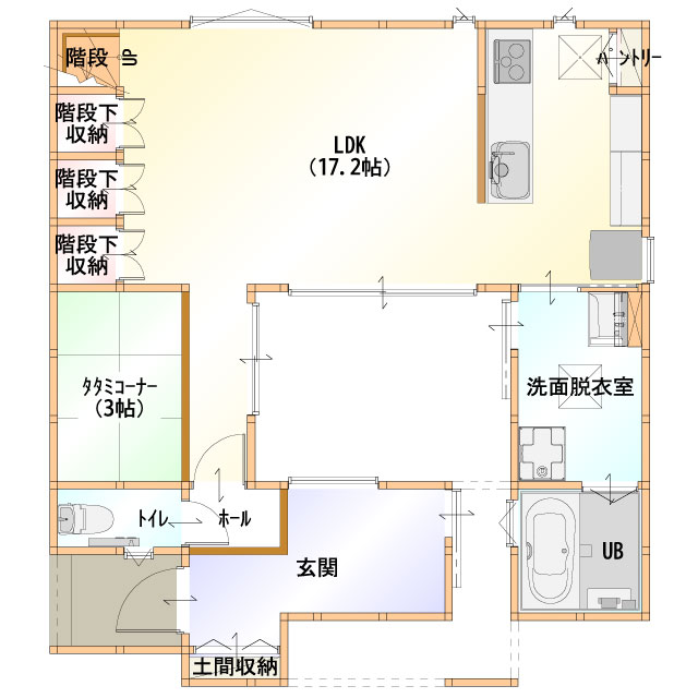 「プライバシーを重視したお家にしたい!けど、暗いお家にはしたくない…」といった要望を叶えたプランがこちら。必要最低限の窓しか作らず、外からの視線が気にならずに過ごせるお家となっています。窓が少ないゆえに発生する“閉鎖的な空間”も、建物の中心部に作られた“中庭”が全て解決してくれます。上からの十分な採光により、室内も明るくなり、風通しの面でも問題はありません。プライバシーに重点を置いた“窓の無い”住まい感、いかがですか?