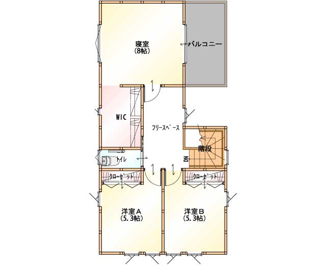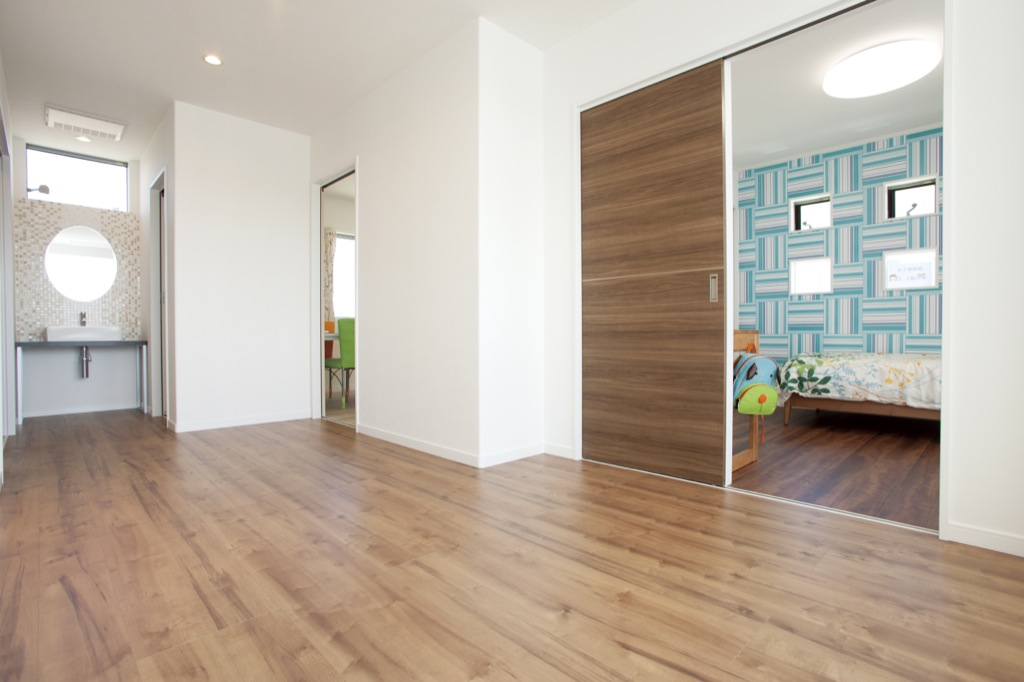 「出来るだけ間口を抑えたお家にしたい…」といった要望を叶えたプランがこちら。間口の狭い土地に対応した間取りとなっており、細長いゆえに取りづらい採光についても、坪庭を取り入れる事で補っています。この坪庭は各部屋から眺められるので、“癒し空間”として家族のみならず、来られたお客様も室内から楽しむ事が出来ます。細長いながらもゆとりの空間がある“縦長の家”という住まい感、いかがですか?