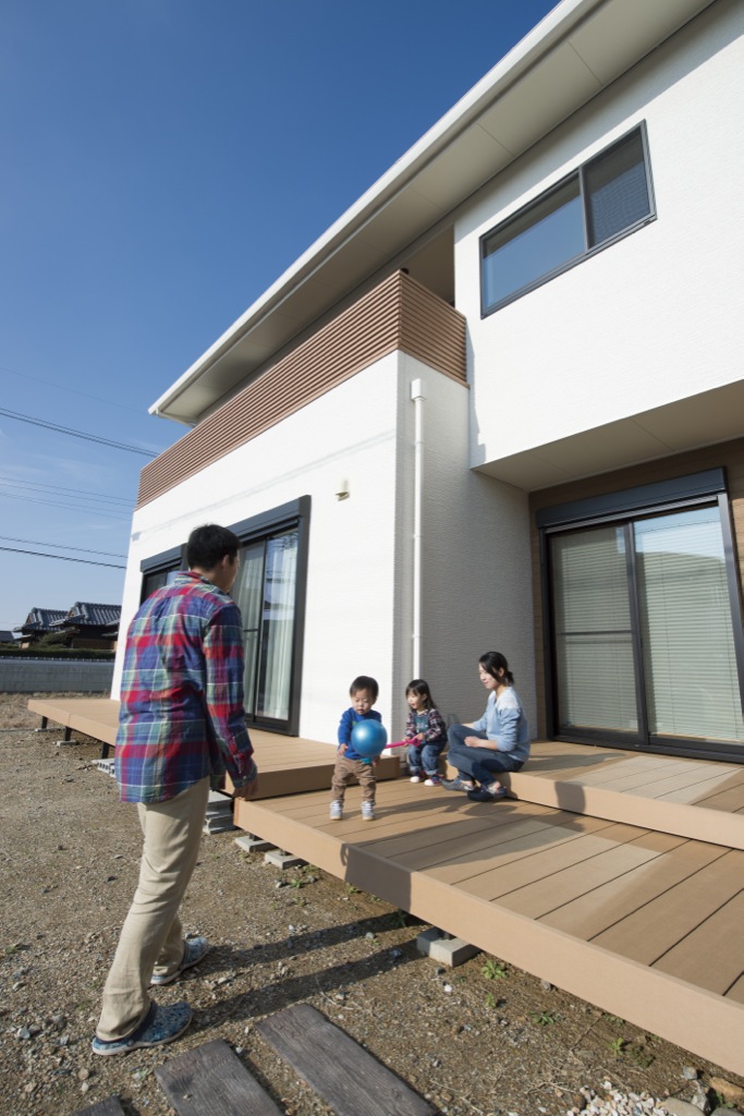 「将来ずっと住み続けられる平屋のおうちが良い。」、「自然を間取りに取り入れたい!」といった要望を叶えたプランがこちら。LDK、中庭を中心に置き、LDKから中庭のウッドデッキにそのまま出られる間取りとなっています。ウッドデッキでは、家族と一緒にガーデニングをしたり、子どもが小さい内はビニールプールをしたりと…使い方様々。家族の誕生から老後まで、長く、苦にならずに住める“平屋”という住まい感、いかがですか?