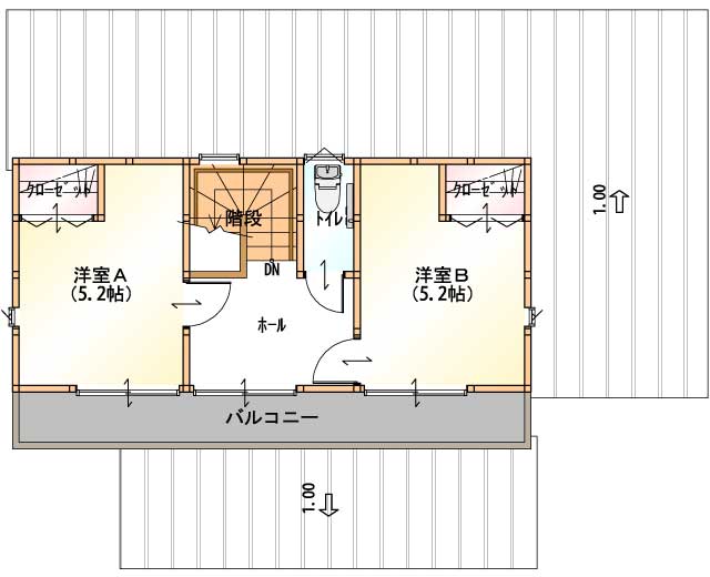 「平屋の様な間取りが良い!けど、プライバシーも考えて子供部屋だけは2階にしたい…。」といった要望を叶えたプランがこちら。平屋の様に1階で全ての用事が終わらせられる間取りとなっているので、子育て期は家事育児の動線の負担を減らし、子どもが親の手を離れた後の夫婦2人暮らしでも“平屋”として使い続ける事が出来るお家となっています。家族のあらゆる“変化”にも対応できる住まい感、いかがですか?