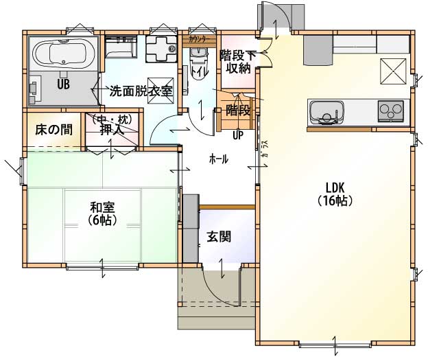 両親や兄弟・親戚、友人など、誰かが泊まりにくることがある。お客様が来たときにリビングへ通すのはちょっと…。という悩みを解消したプランがこちら。両親、孫、お客様…せっかくならしっかりおもてなししたいですよね。6帖和室のゲストルームがあるこちらの間取りなら、突然の来客でも対応できます。布団が十分に入る収納があり、宿泊する場合も安心。飾れる床の間でおもてなしも万全です。ゲストルームのある住まい感、いかがですか?