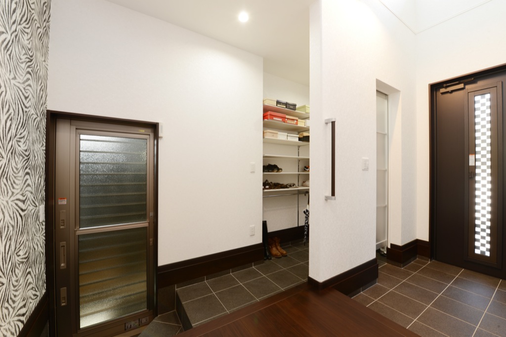 土間収納から直接行き来ができるので、雨の日も濡れる事なく出かけることができます。