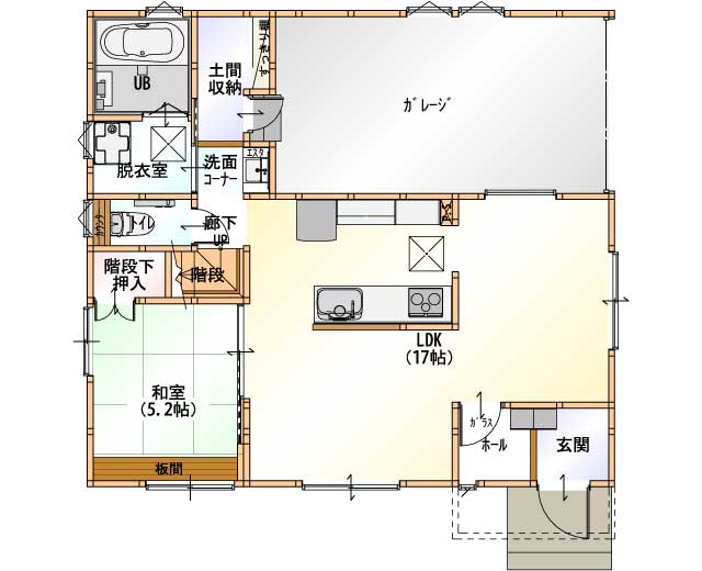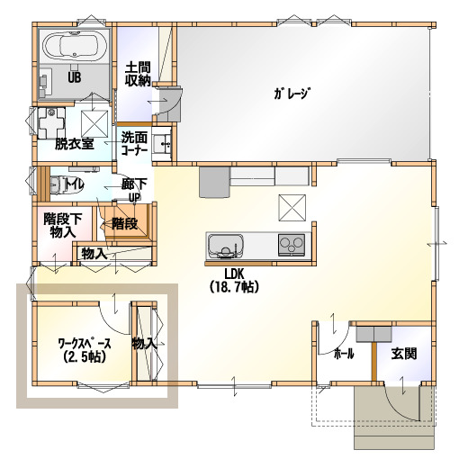 「車を雨風を避けて停めておけるビルトインガレージに憧れる!生活しながらお気に入りの車を眺めたい!」という要望を叶えたプランがこちら。憧れだったビルトインガレージを坪数をおさえつつ実現しました。さらに、車との暮らしを重視してリビングからも窓越しにガレージを眺められるような間取りとなっています。雨の日にガレージから直接室内へ入れる家族への配慮も。車好きの夢を叶える、一緒に車と過ごせる住まい感、いかがですか?