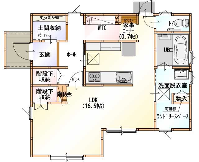 仕事をしながら、家事もきちんとこなしたい。家事を効率よくこなせて、物も散らかりにくくしたい。外出している事が多いので洗濯物を干すのが大変。という要望を叶えたプランがこちら。仕事から帰ると、時間も無い中でも家事をやらなければいけないもの。家事動線にとことんこだわりぬく事で時間を短縮。キッチンに向かうまでに、物が片付く 収納動線や、洗濯物も安心のランドリールーム、家事コーナーなら、必要な物がすぐに手に取れます。仕事も家事も頑張る夫婦が笑顔になる住まい感、いかがですか?