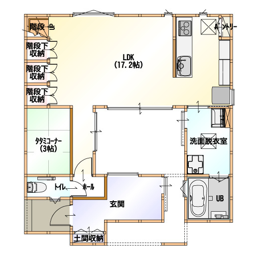 「プライバシーを重視したお家にしたい!けど、暗いお家にはしたくない…」といった要望を叶えたプランがこちら。必要最低限の窓しか作らず、外からの視線が気にならずに過ごせるお家となっています。窓が少ないゆえに発生する“閉鎖的な空間”も、建物の中心部に作られた“中庭”が全て解決してくれます。上からの十分な採光により、室内も明るくなり、風通しの面でも問題はありません。プライバシーに重点を置いた“窓の無い”住まい感、いかがですか?