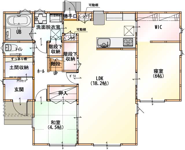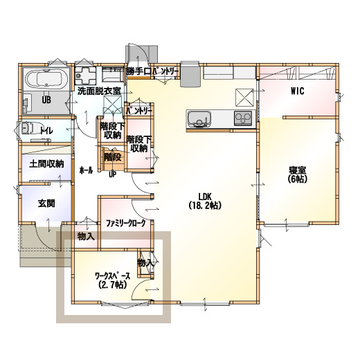 「平屋の様な間取りが良い!けど、プライバシーも考えて子供部屋だけは2階にしたい…。」といった要望を叶えたプランがこちら。平屋の様に1階で全ての用事が終わらせられる間取りとなっているので、子育て期は家事育児の動線の負担を減らし、子どもが親の手を離れた後の夫婦2人暮らしでも“平屋”として使い続ける事が出来るお家となっています。家族のあらゆる“変化”にも対応できる住まい感、いかがですか?